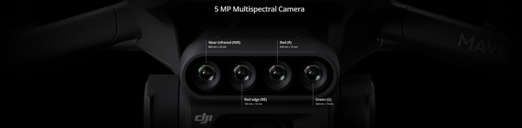 The UAS has two main sensors, one is an RGB camera which detects the visible spectrum to provide photogrammetry data for us mere humans to have a base reference of the reconstructed data model. The other, the multispectral camera, is comprised of four smaller sensors that detect specific wavelength ranges – these ranges are known as spectral bands, which is where the term “multispectral” is derived.